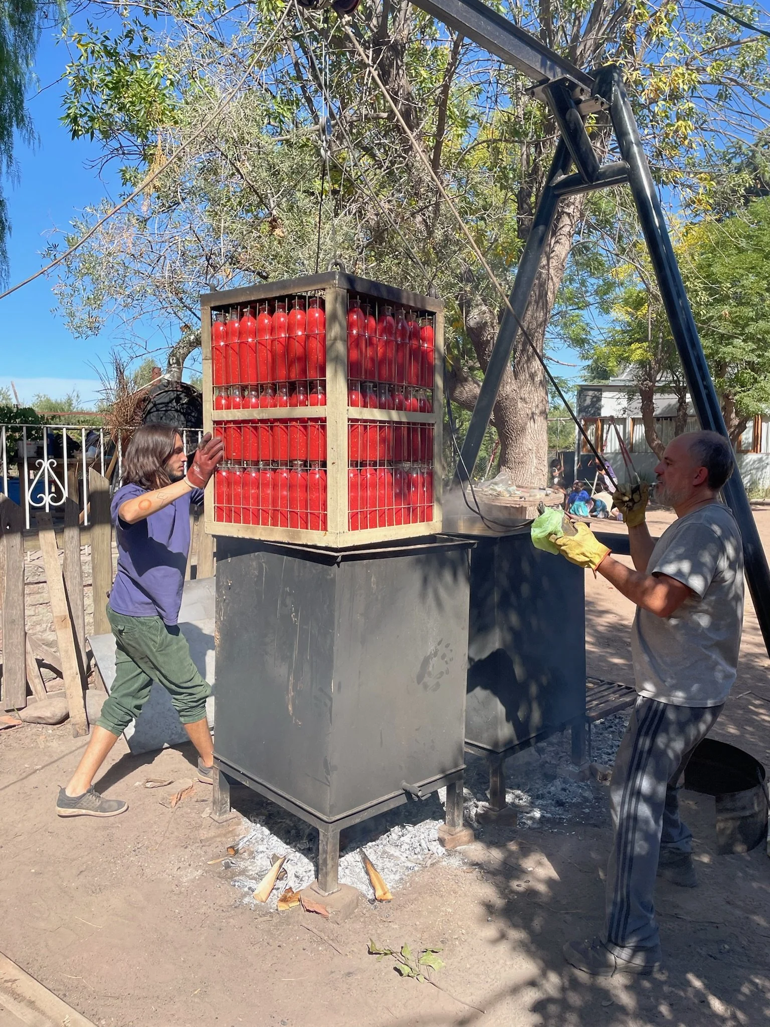 Because every step of canning is done by hand, from setting up equipment to crushing, bottling, boiling, and cleaning, the process is long and demanding.